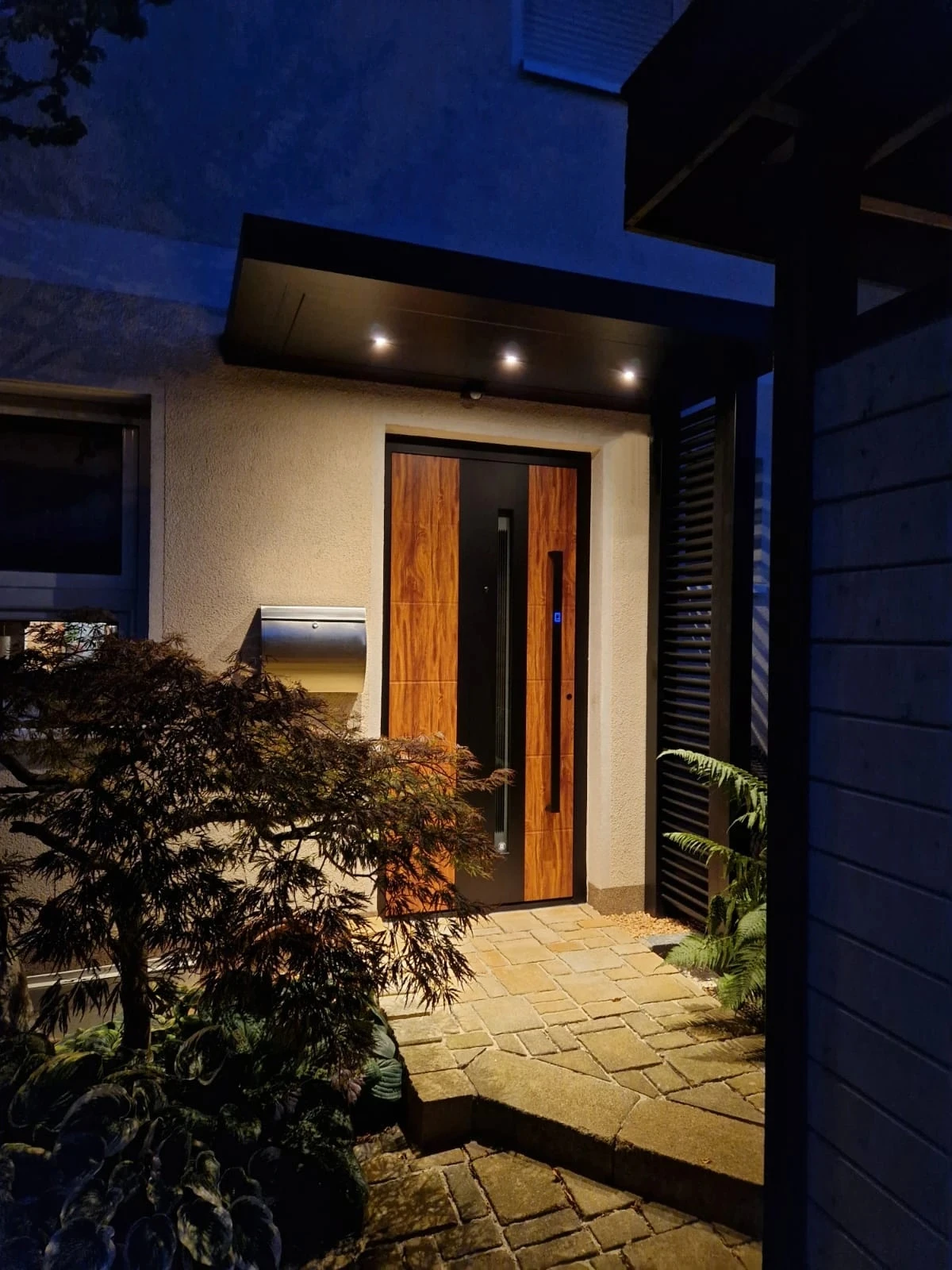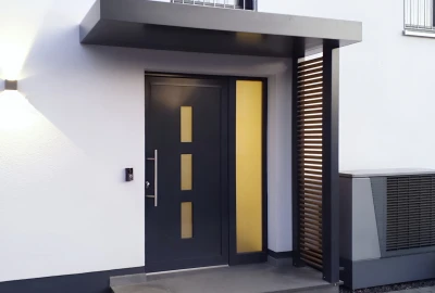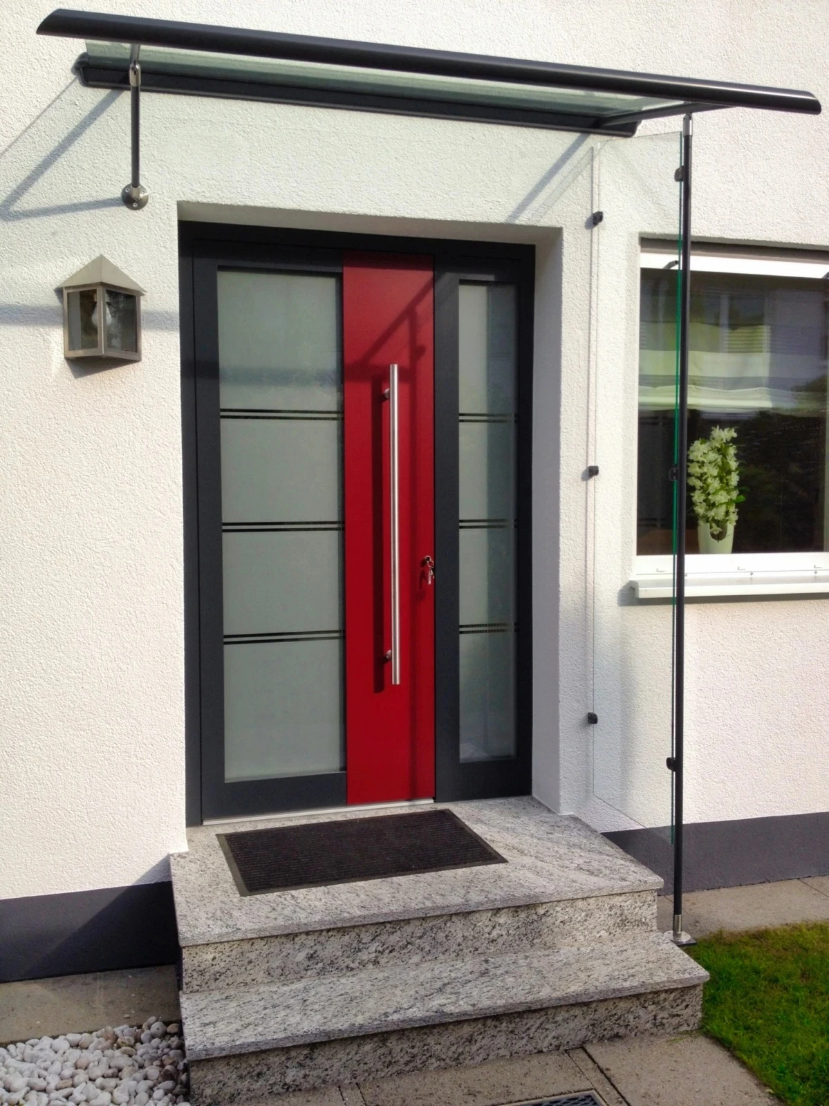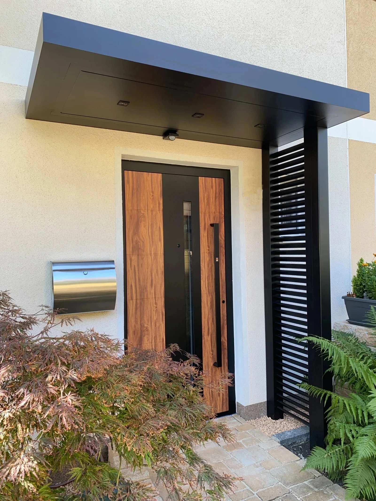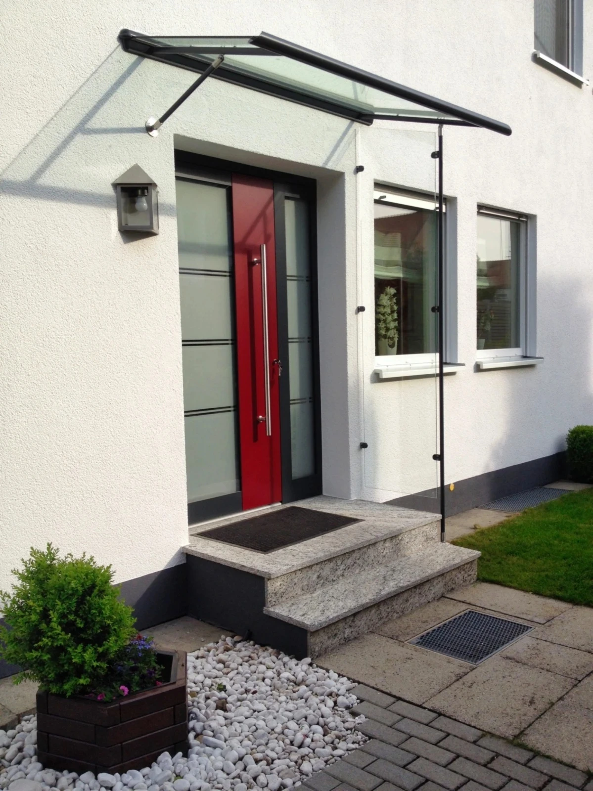 Ein gestalterisch ansprechendes Vordach schützt nicht nur den Eingangsbereich und die Haustür, sondern setzt als attraktiver Blickfang zusätzliche Akzente.